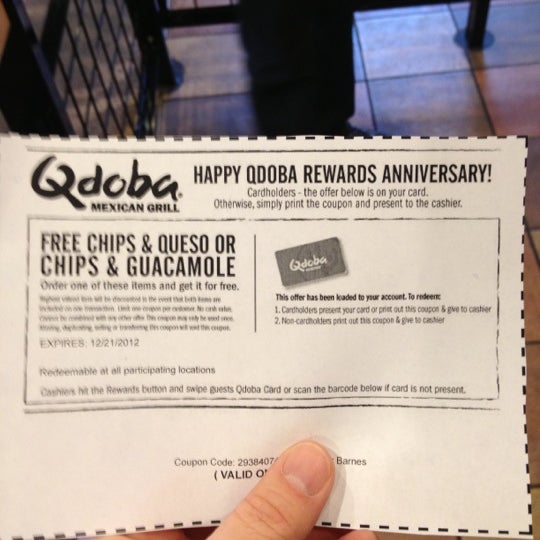 🏆$20 Qdoba coupon codes, promo codes in 2022 Qdoba US Coupon Codes Sales code 50 Points + 100 Points on First Visit for Queso, Chips, Salsa Qdoba coupons - save massive EXTRA from Qdoba sales or markdowns this week for a limited time. soon 4 USED SUCCESS 0% Show Code Show Code 5 $ OFF code